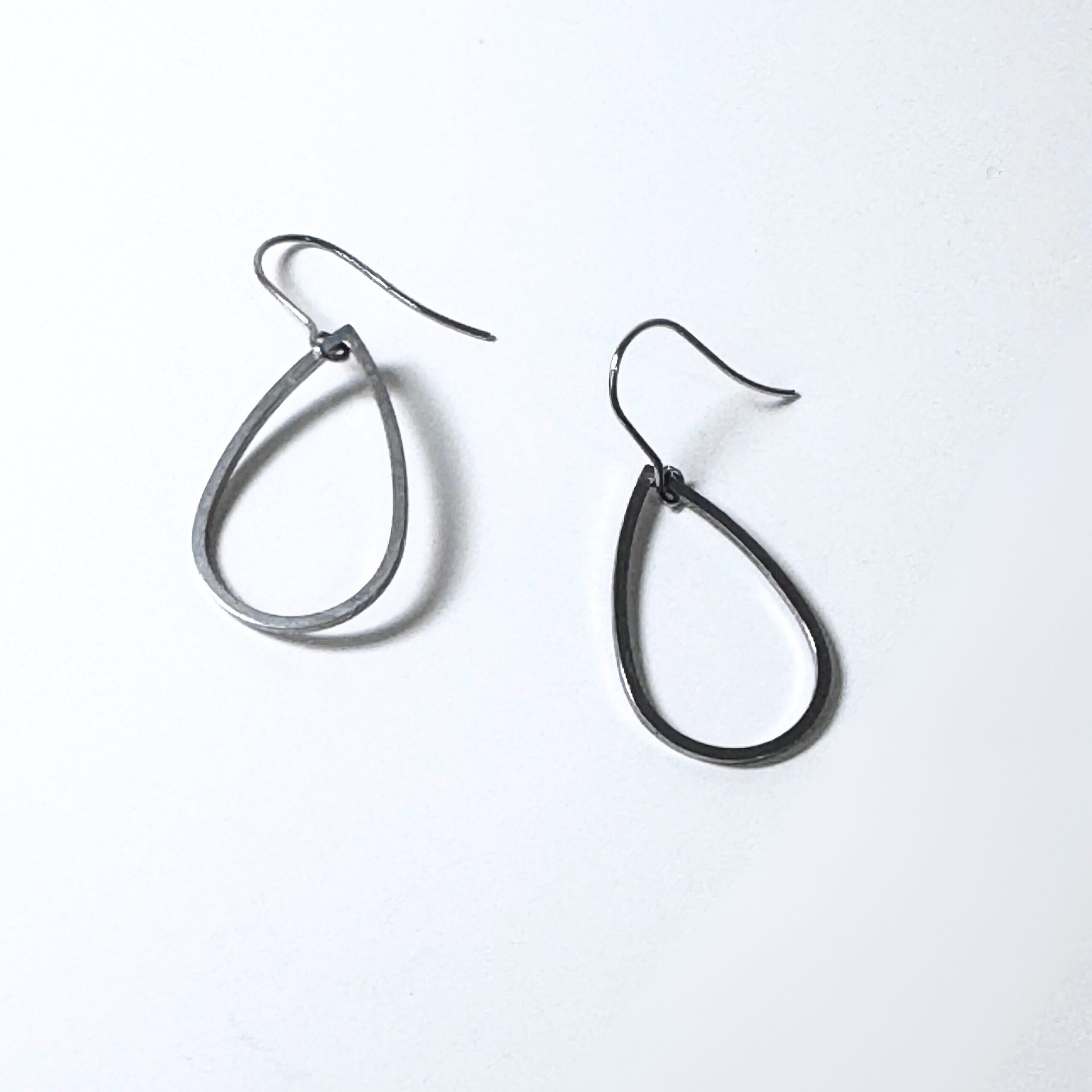 A simple steel teardrop charm (approx 25mm) on handmade steel ear wires.